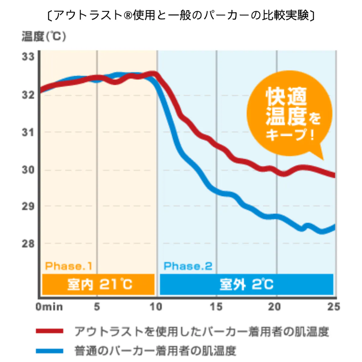 では、『アウトラスト®』でキープできる表面温度とは?