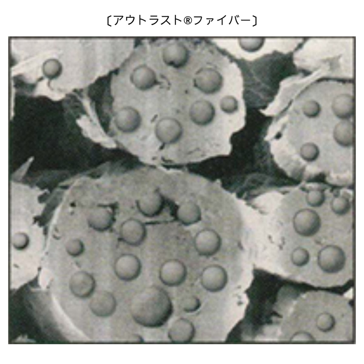 なぜ、『アウトラスト®』は温度調節機能に優れているのでしょうか?その正体は、アウトラスト®ファイバー(繊維)の中に組み込まれた直径2〜3ミクロンという小さなマイクロカプセル。