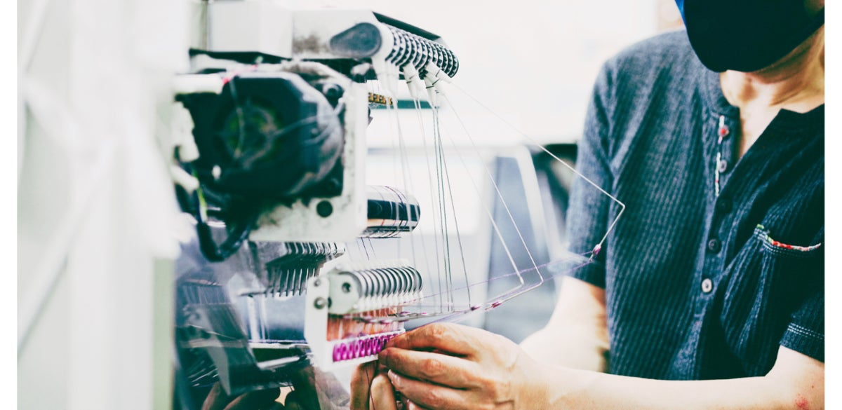 他の産地では難しいとされる、高い編立(あみたて)の技術力。職人1人ひとりが1ミリ単位で調整を加えることで、コンピューターだけでは生み出せない繊細な品が作り上げられます。