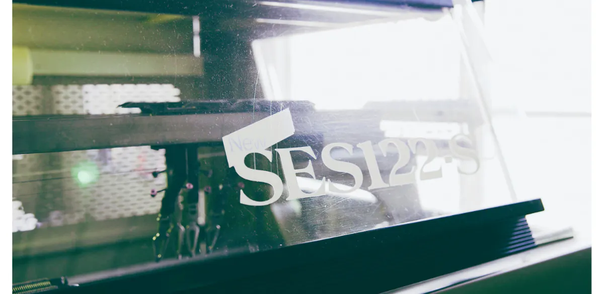 「編み立て」の機械はSES122-Sを使用。素材や編地に合わせて加えられるパターン作成は、長年の経験と緻密な計算によって仕上がりを左右します。