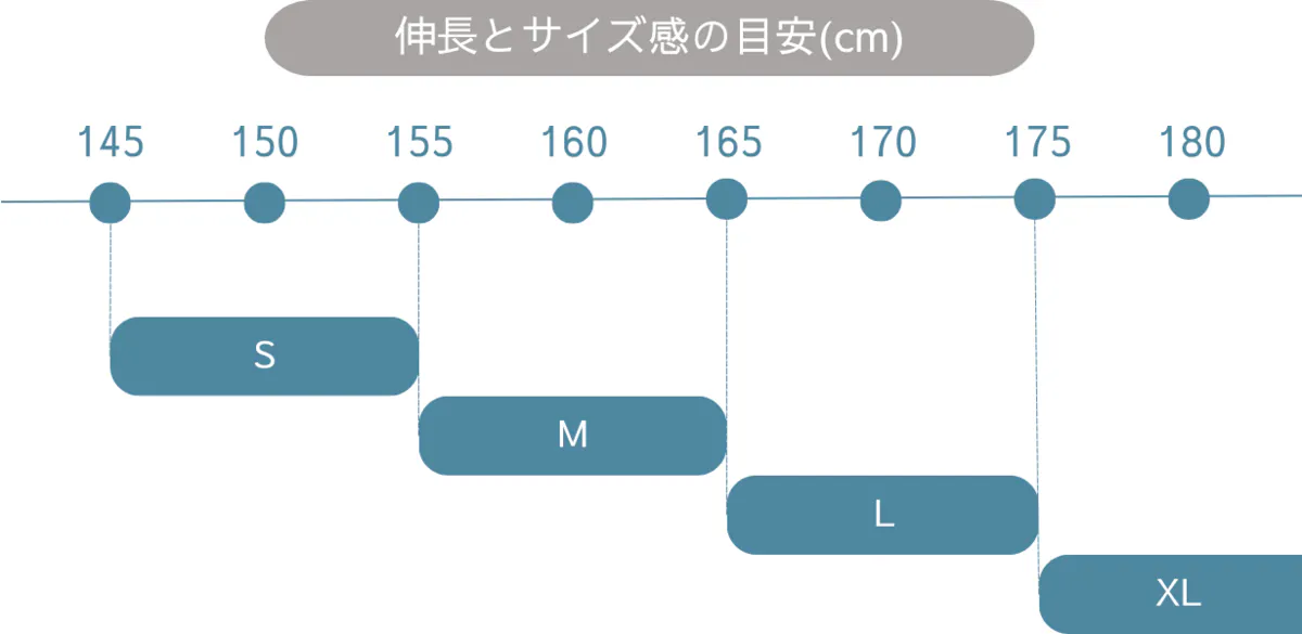 A5. S、M、L、XLまで幅広く4サイズ展開しております。男性は、M~XLを。女性はS~Lサイズと希望とされるサイズ感に併せてご選択いただけます。