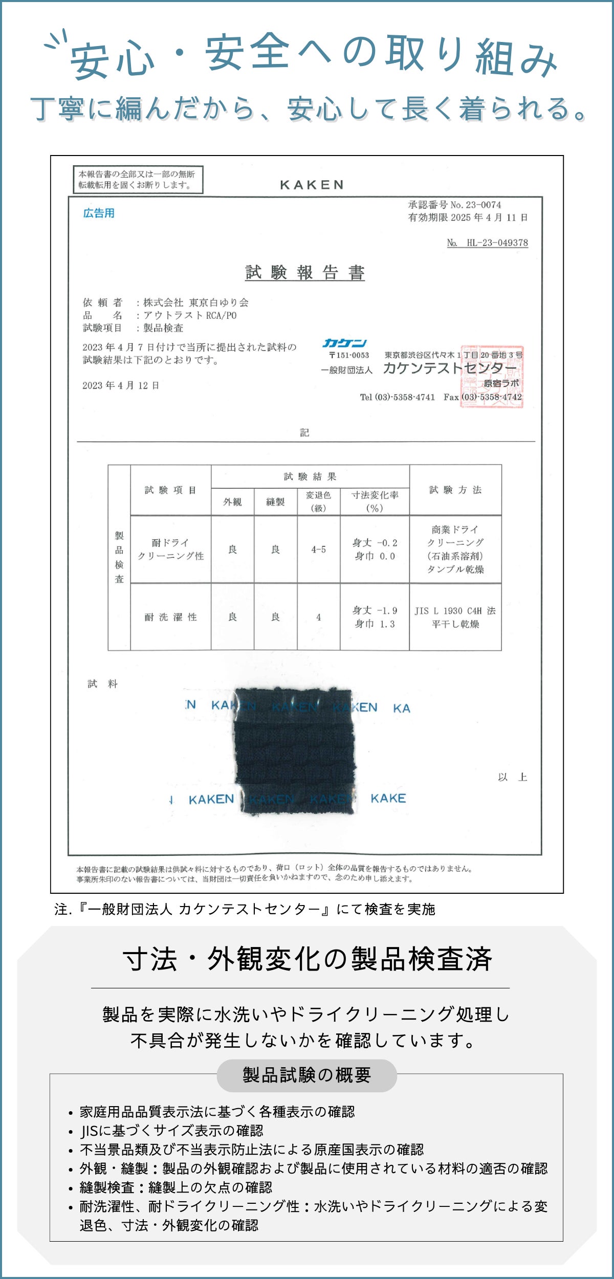 長く大事に着用いただきたい。「限界リラックスフィット プルオーバー」は、安心水準の品質ポリシーを厳格に定めながら、お手入れも限りなく手軽さへ配慮。検査も実施し、品質認定を受けました。