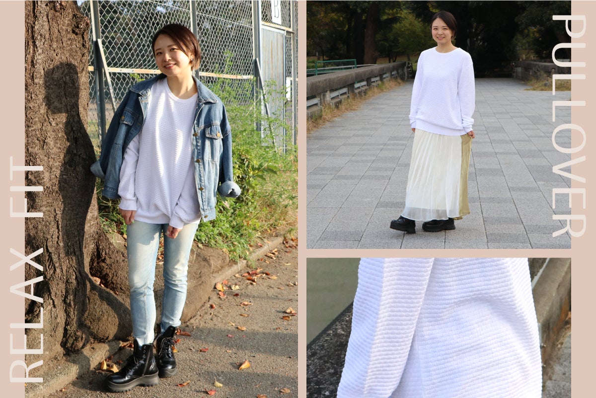 「限界リラックスフィット プルオーバー」は、サイズの悩みに対して「肩がきつくならない」「1日着ていても疲れない」「動きやすい」といったちょうど良いサイズ感を追求しました。