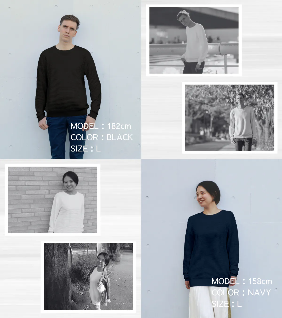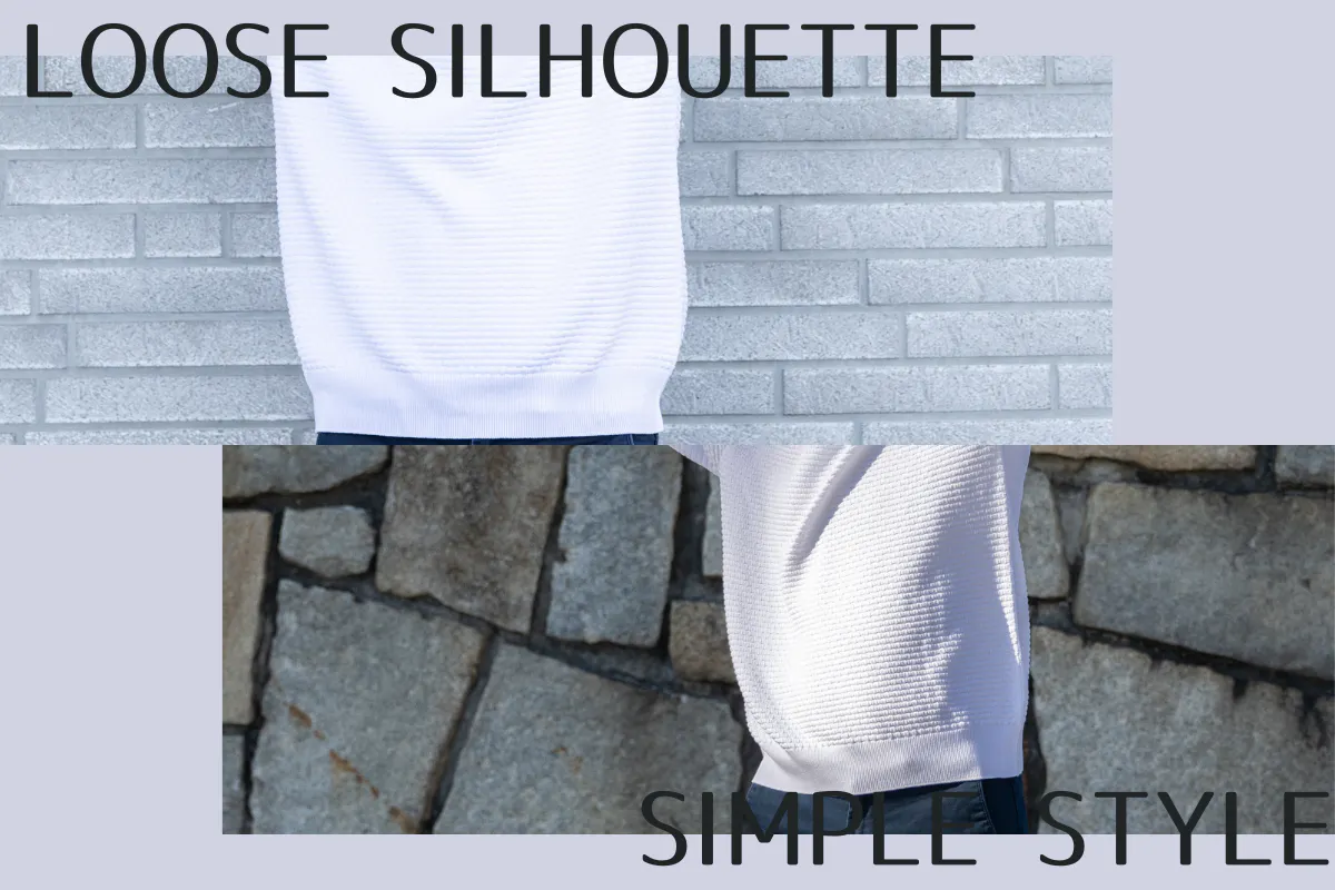 結果として生まれたのが、4サイズで展開する「ラフ過ぎないオーバーサイズ」。このような1人1人が抱える体形の悩みを解決できるのが、オーバーサイズの魅力。もう、お腹まわりを気にする必要はありません!