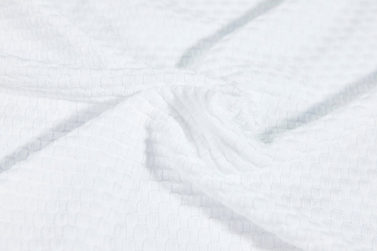 今回の編み方は変形カノコ編。ハイゲージで編むから、豊かな表情がプラスされます。さらに、生地に凹凸があることで肌にまとわりつかず、快適な着心地が生まれます。