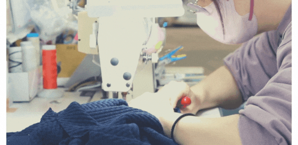 「縫製(ほうせい)」は無縫製のホールガーメント機ではなく、丁寧にパーツごとにミシンで縫いあげる。日本の職人ならではの繊細さと器用さで微調整をおこないながら、縫製の工程を踏みます。