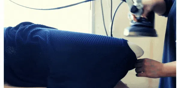 縫い合わせた箇所は伸び縮みが効くから、着心地を追求するためには、このプロセスが欠かせません。