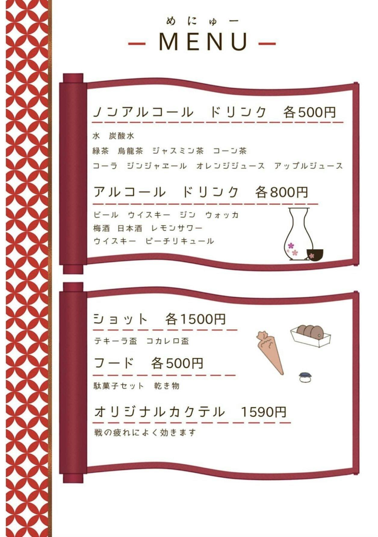 今回はメニュー表とオリジナル衣装デザイン(制作中のため変更の可能性有)を公開しました!