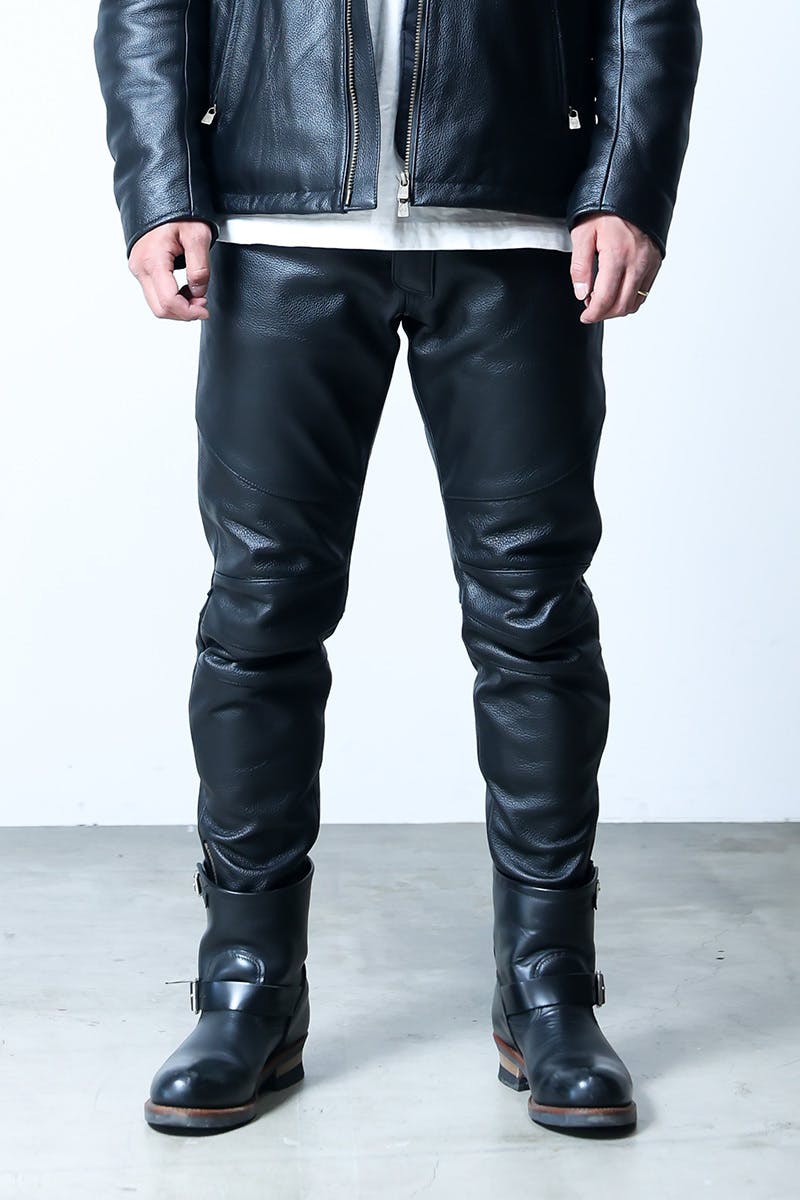 バイカーのレザーパンツは他ブランドも多々ございます。しかしながらスタイルが若干太めでしたり、昔ながらというようなイメージも多くあります。今回はハイブランドを意識し「これはカッコいい!」と感じていただける製品を目指し、企画いたしました。バイクに乗る方に嬉しい機能性は兼ね備えつつ、ハイエンドな雰囲気を醸し出すデザインとなっています。