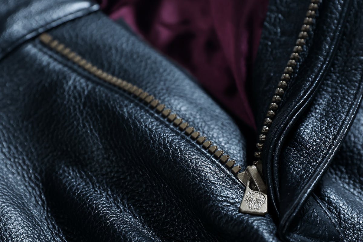 また、ジッパーの引手にはDarkアイコンでもあるメキシカンスカルの刻印を特注で採用しました。さりげないアクセントに。