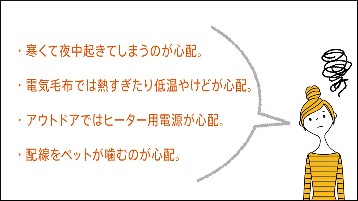 無電源で冬を快適に過ごしていただきたい。