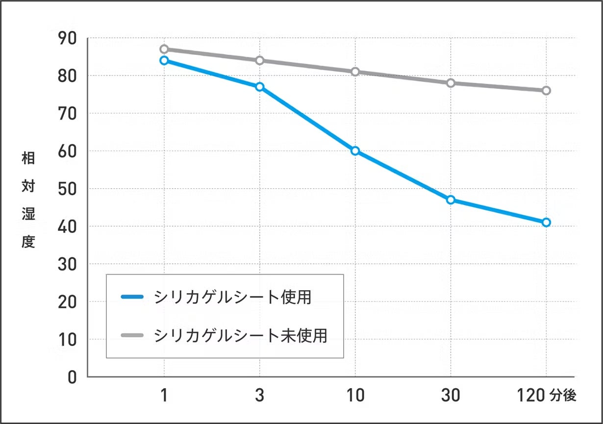 ※シリカゲルシートのテスト結果です。ぽかぽかパッドとしてのテストは行っておりません。