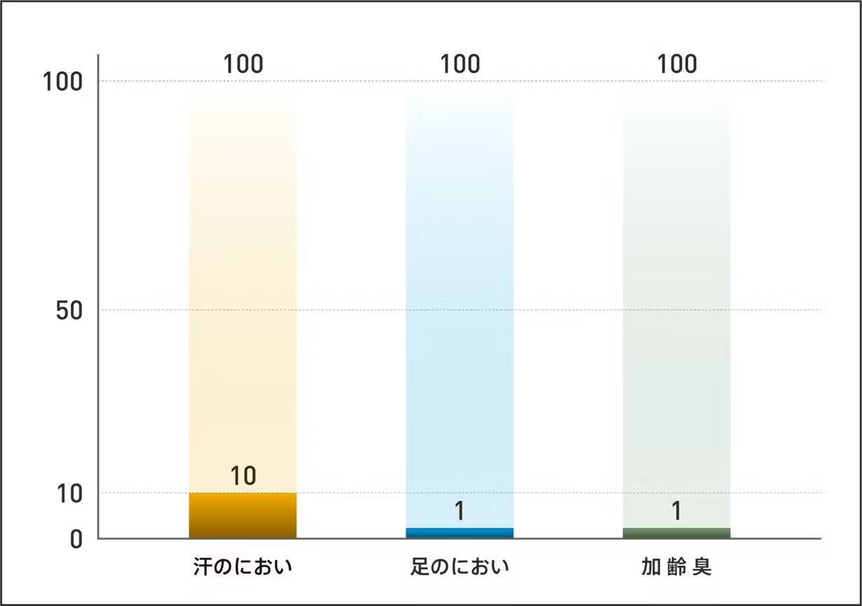 また、汗や体臭の成分であるアンモニアや、足のニオイの元であるイソ吉草酸、加齢臭の原因物質のひとつ、ノネナールなどを湿気と一緒に吸収します。