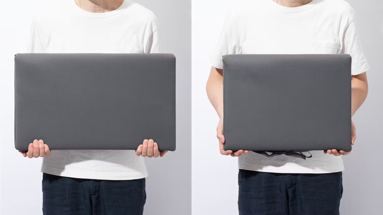 A : クッション性はほとんどありません。高性能の断熱材は柔軟性が高いと、内部の微細空隙が変形し断熱効果が減少しますので、できるだけ硬く作ります。本製品に使用している断熱材は、高断熱と柔軟性(わずかに曲がります)を兼ね備えたものです。