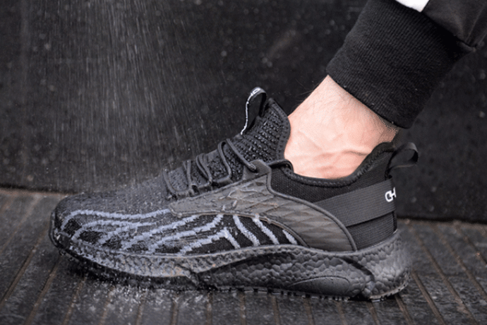 スニーカーには撥水加工が施されており、水や湿気、液体が浸透するのを防ぎます。