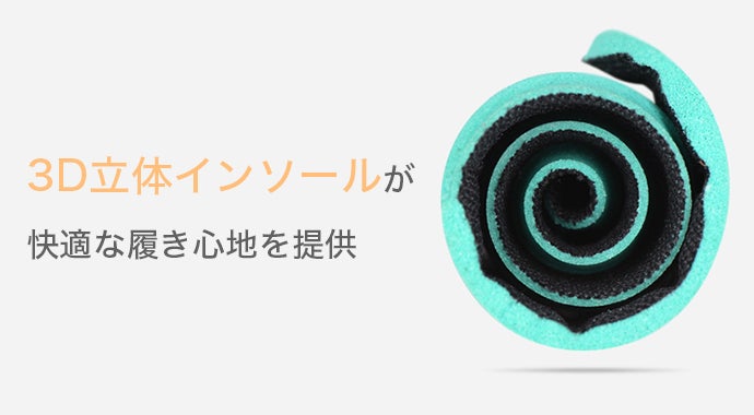 高弾力の3Dインソールが、長時間の歩行や立ち仕事でも、快適な履き心地を提供します。