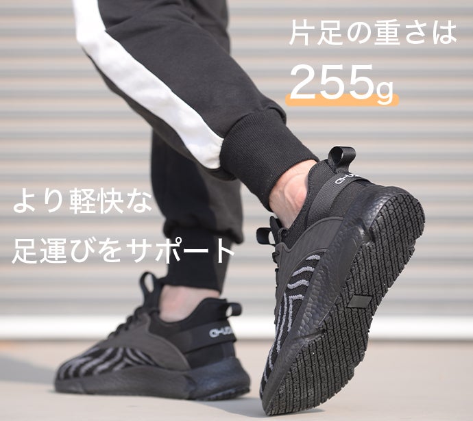 片足の重さは255g(23.5cmの場合)、より軽快な足運びをサポートします。