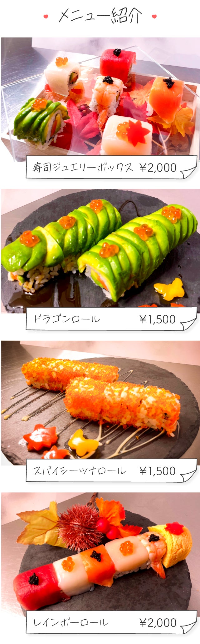 ばえるロール寿司が最も得意。なっちが、手で、心をこめて、「握り」ます。メニューを一部ですが公開します!