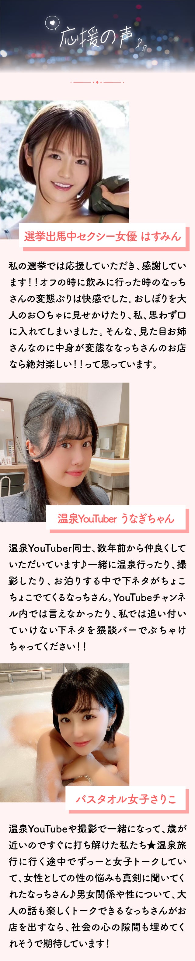 今回の熟女猥談バーではその時の経験を活かして、つながりのある女の子たちに楽しく、良い環境で働いてほしいと心から思っています。