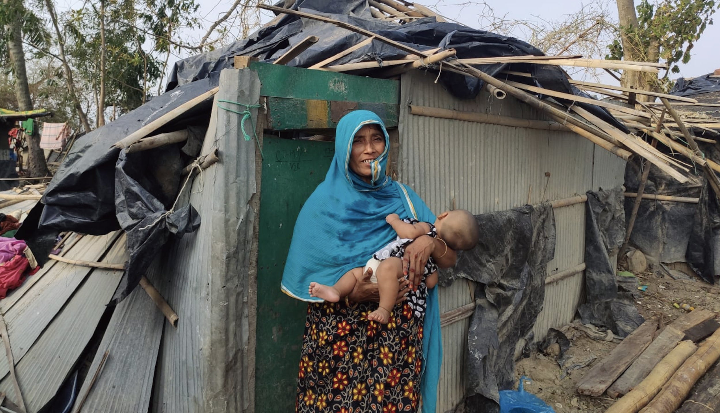 サイクロンによって、崩れてしまった家(バングラデシュ)