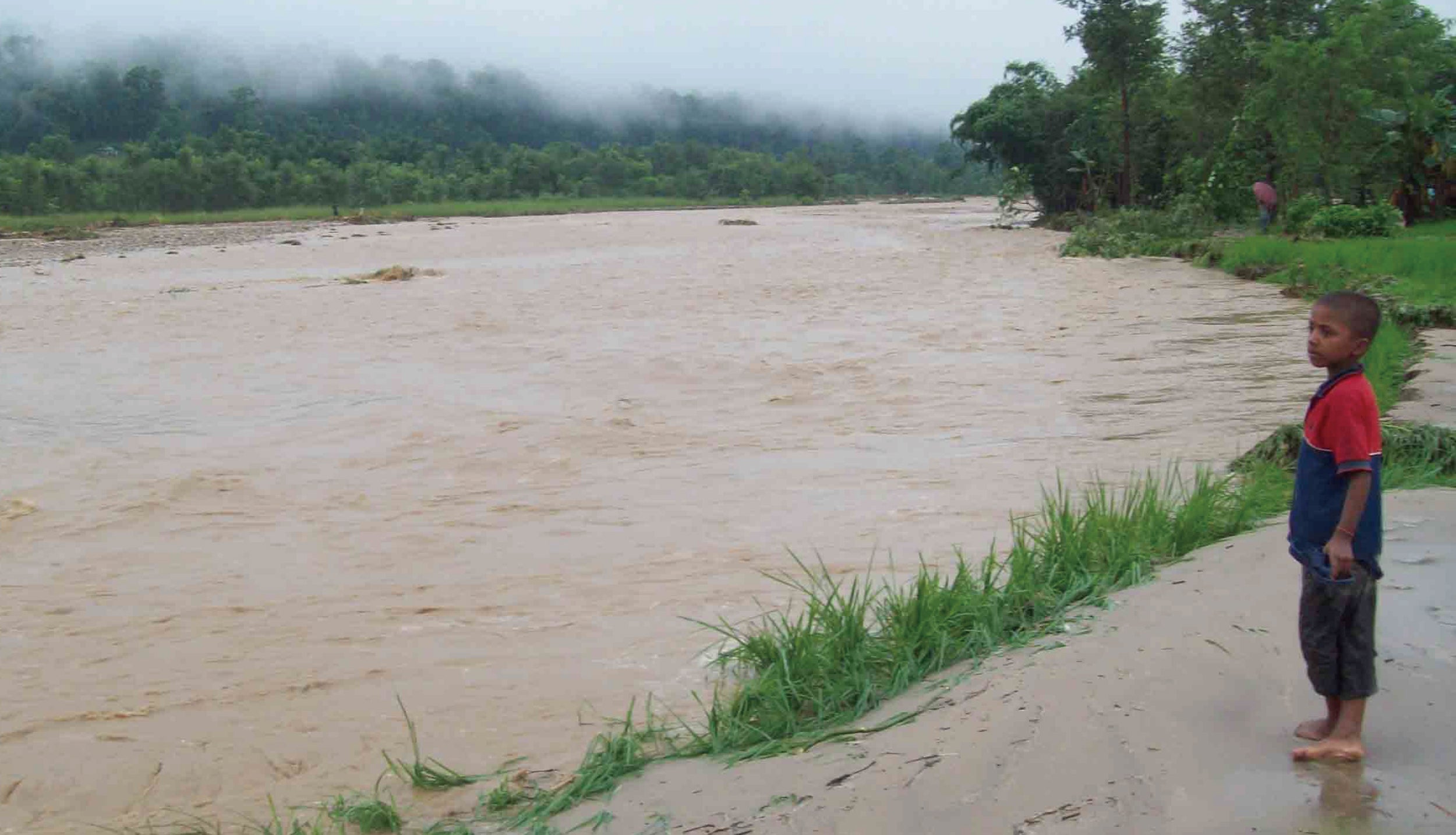 洪水によって増水した川(ネパール)
