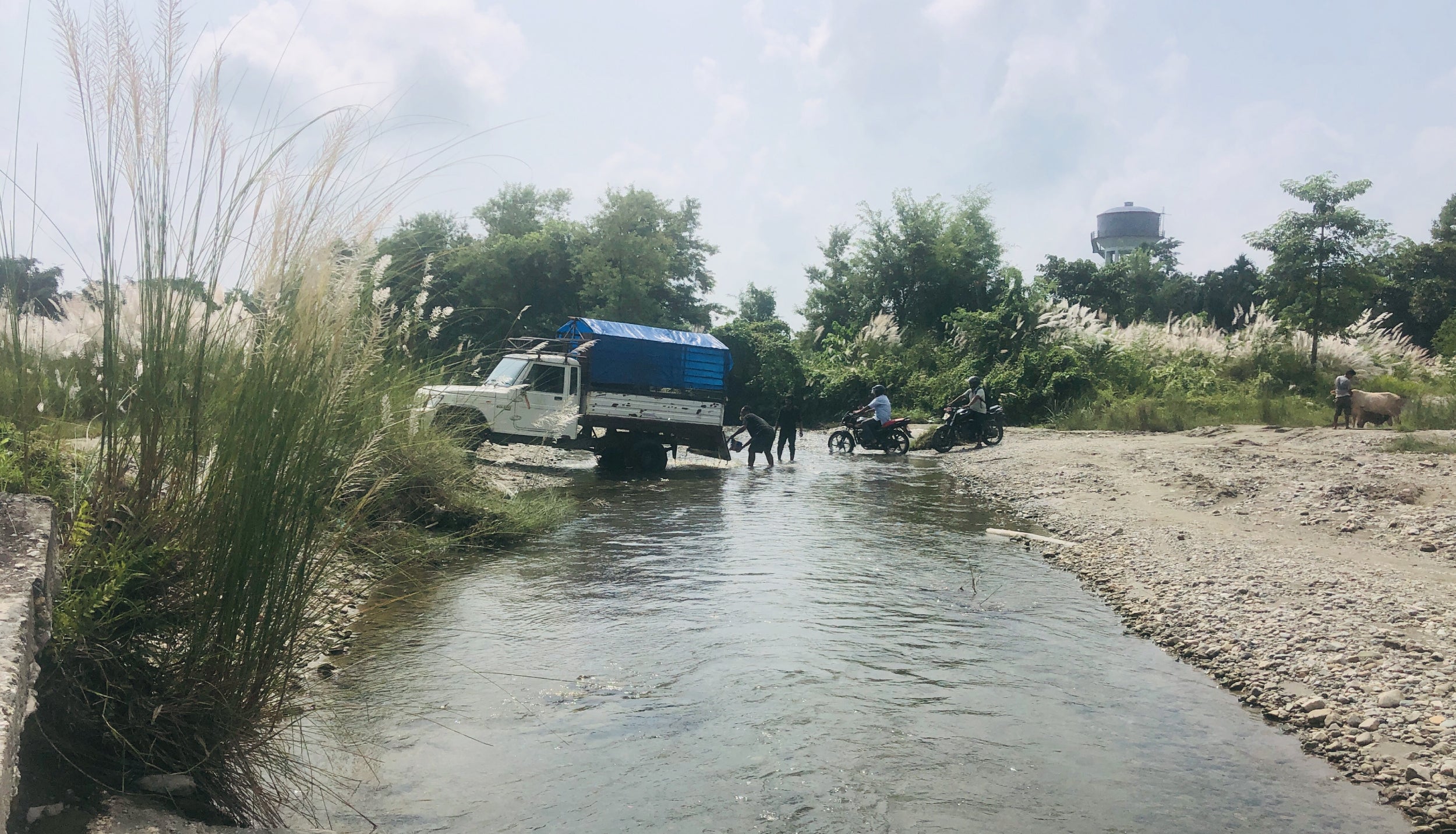 橋がなく車両が川を横断する様子(ネパール)