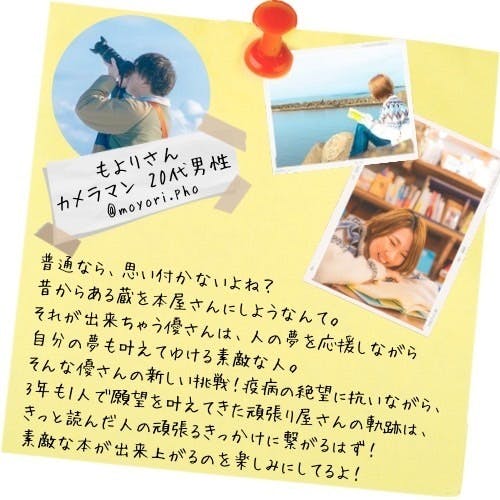 記念すべきトップバッターは、クラファンページにも使われている素敵な写真をたくさん撮ってくれた友人カメラマン・もよりさん。