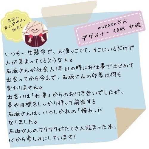 今日は、今回の本でデザイン担当をしてくださるデザイナーさんと、印刷会社さまのお二人からのコメントをご紹介します。