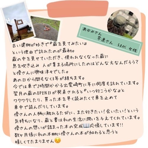 なんだかあゆみさんからのメッセージがないのが寂しくて、依頼したらすぐに書いてくださいました!