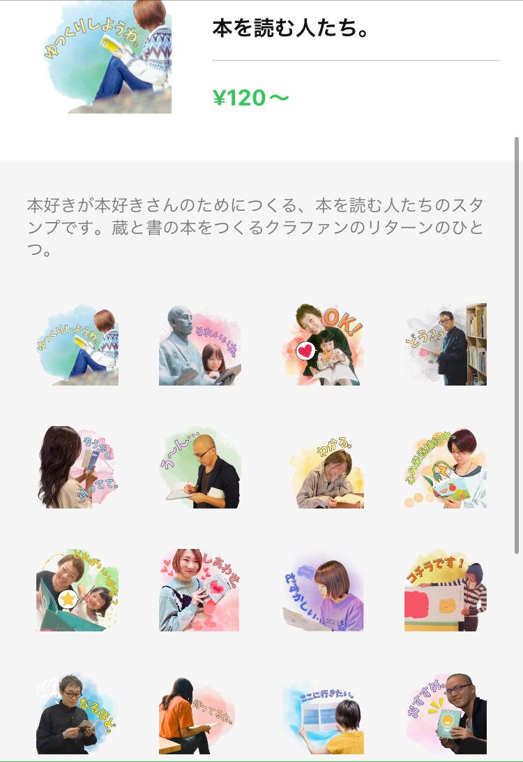 このバラエティ豊かなメンバーに、サンプル制作を快諾してくれた書店員の友人と、恐縮ながらわたしの写真も織り交ぜて、全員がそれぞれの好きなように本を読んでいる姿という、なんともおもしろいスタンプが完成しました!!!