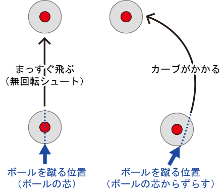 「サッカーのボールテクニックは、キックにしてもドリブルにしてもカーブにしても、ボールの中心、物理的な重心を捉えることが重要です。