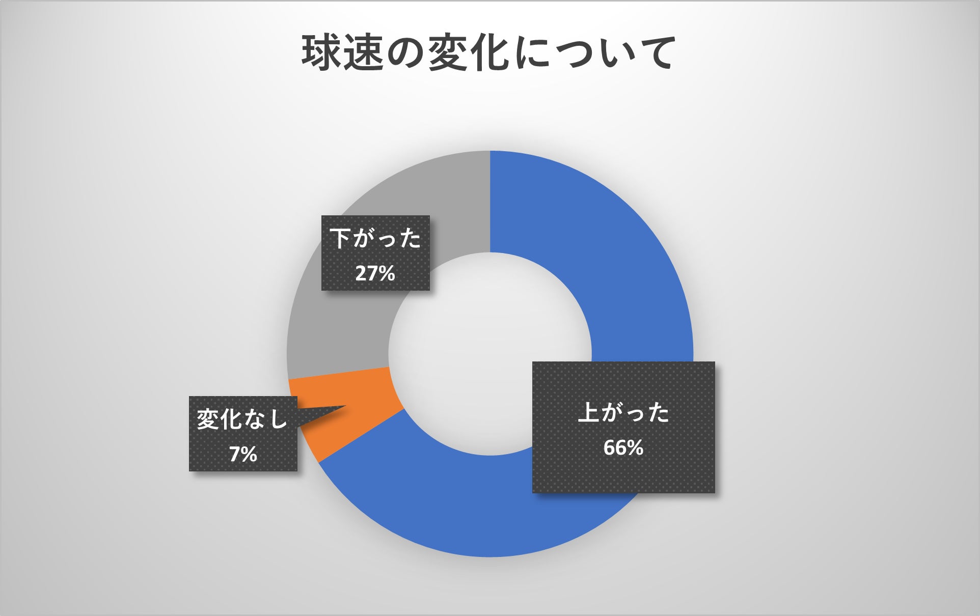 通常のボールでシュートスピードを測り、ヒノマールでキャッチボールをした後に再度シュートスピードを測定しました。体験した118名の内、66%(77名)の方のヒノマールを使用後にシュートスピードが向上する結果となりました。ボールの芯を捉えやすくなったことで、ボールスピードが向上したという可能性が考えられます。