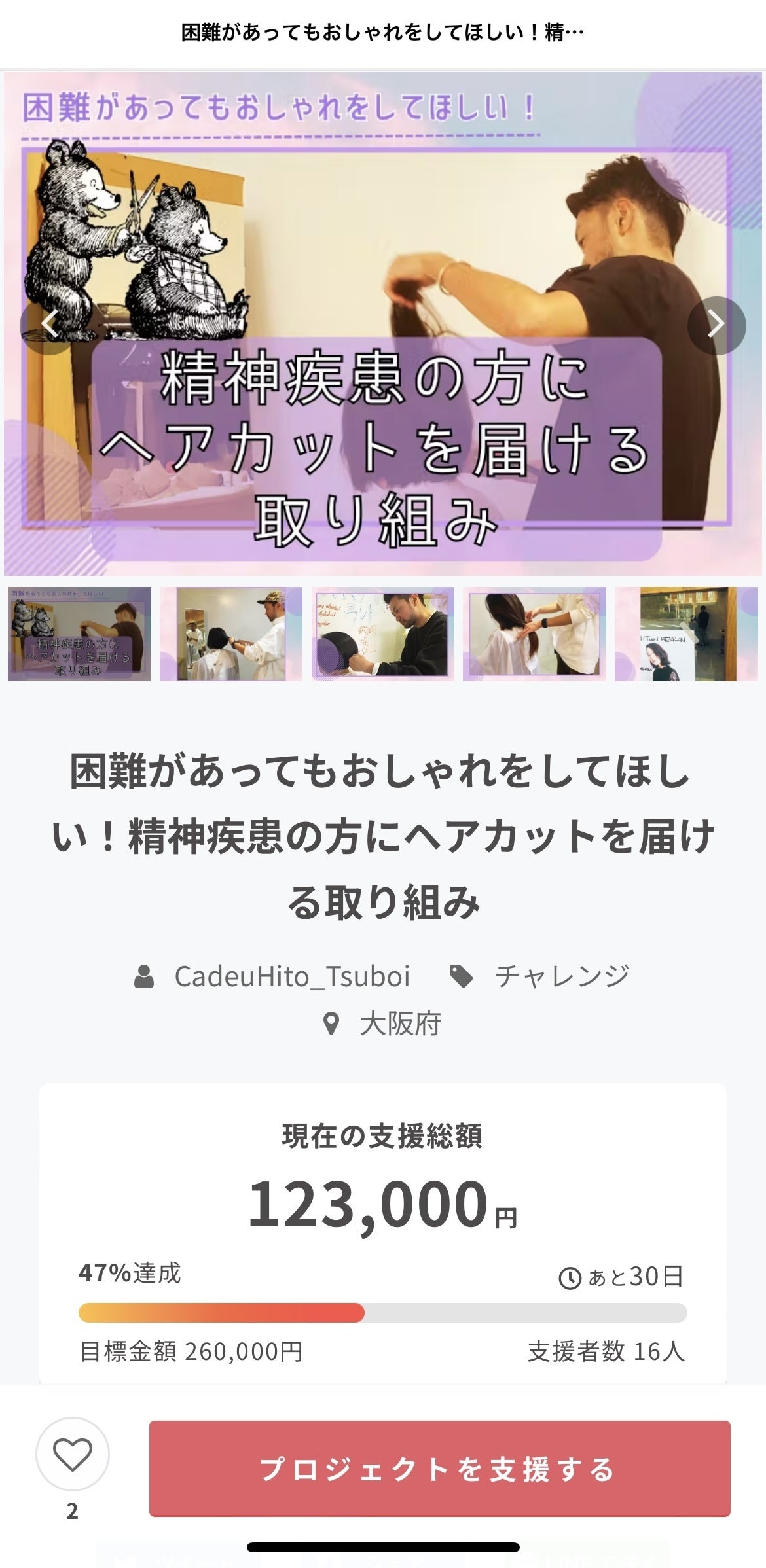 開始から1週間で約半分、123,000円のご支援を16名のみなさまよりいただきました!
