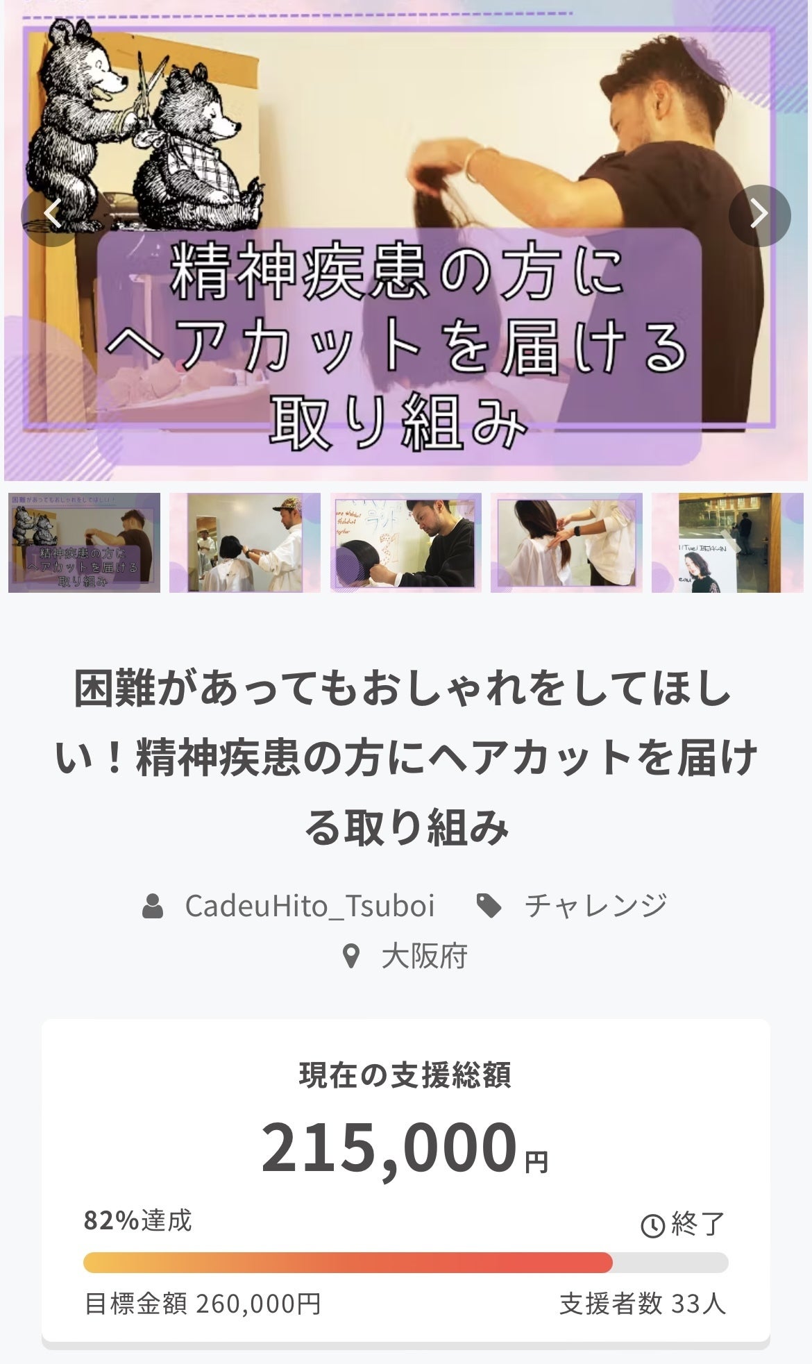 今回はこのクラウドファンディングといった形でしたが、必要としてくださる方がいる限り今後もクリニックへの訪問カットの活動は続けていきます。