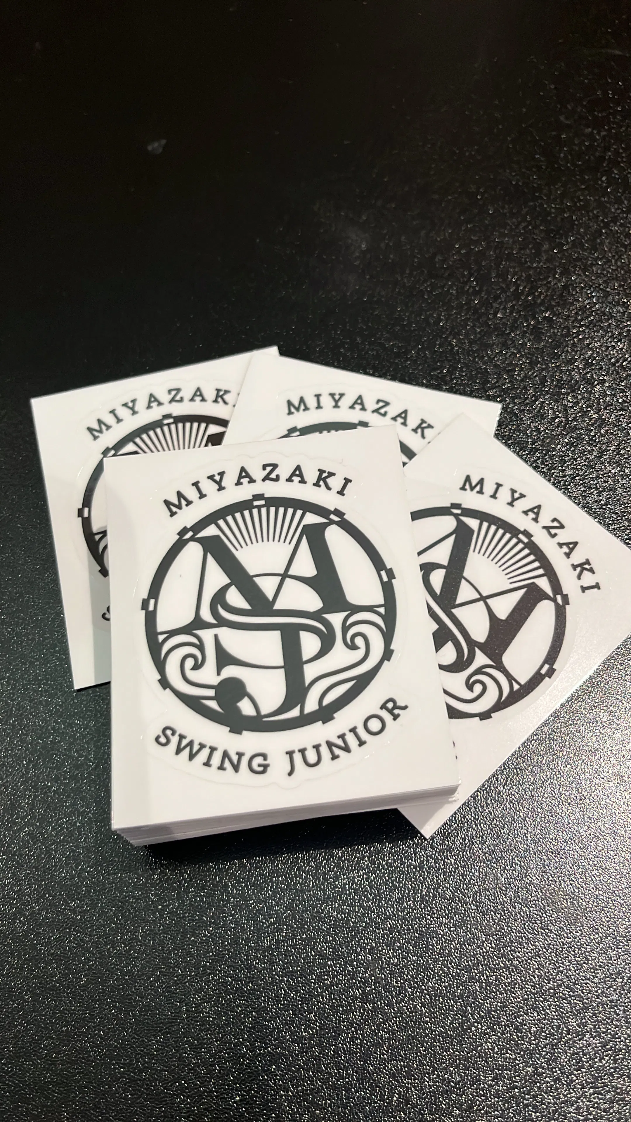 皆様のご支援ありがとうございます。3日目に10万円に到達する事ができました!みやざきスイングジュニアオリジナルステッカーです。宮崎のデザイナーkurumi design さんにみやざきスイングジュニアをイメージしてデザインして頂いた物です。ご支援いただいた皆様に1月にお届けいたします!