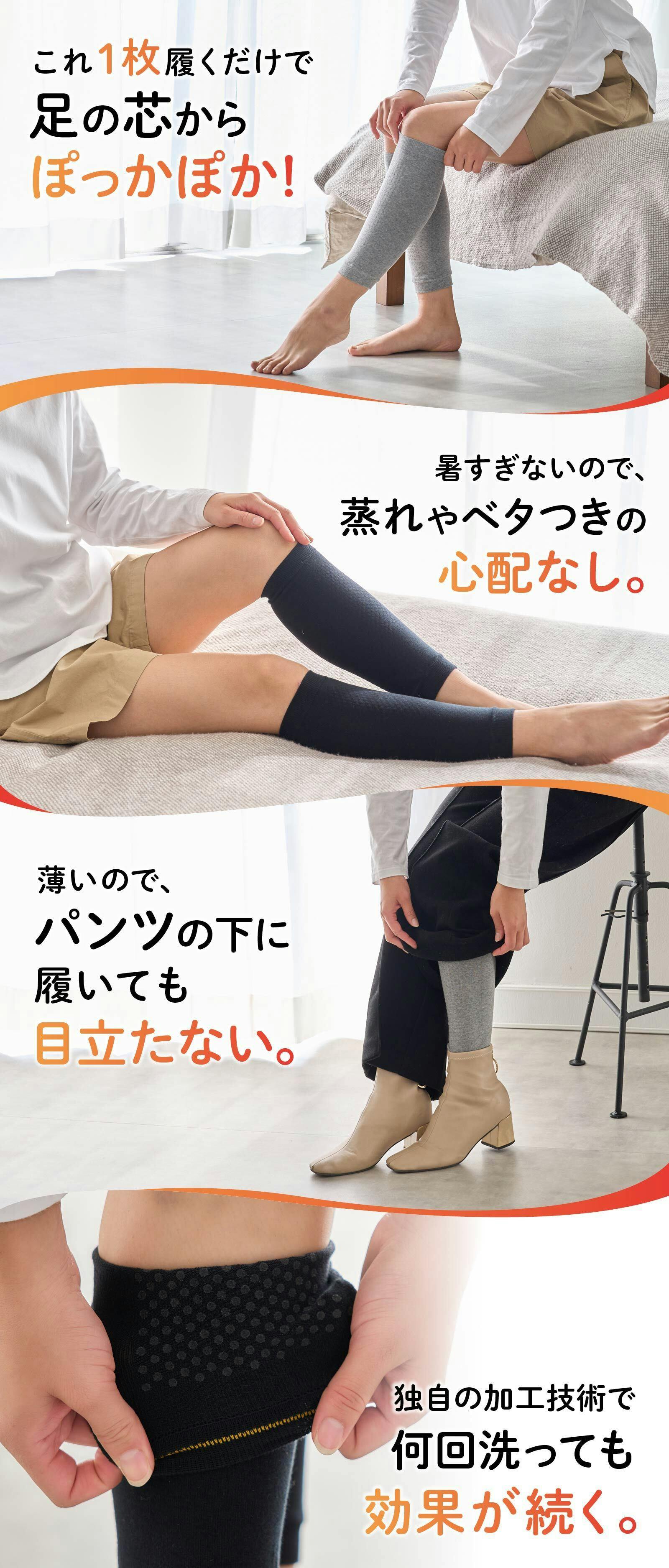 そんなお客様のお悩みに寄り添い、本商品を履くことで身体をじんわり温めます。