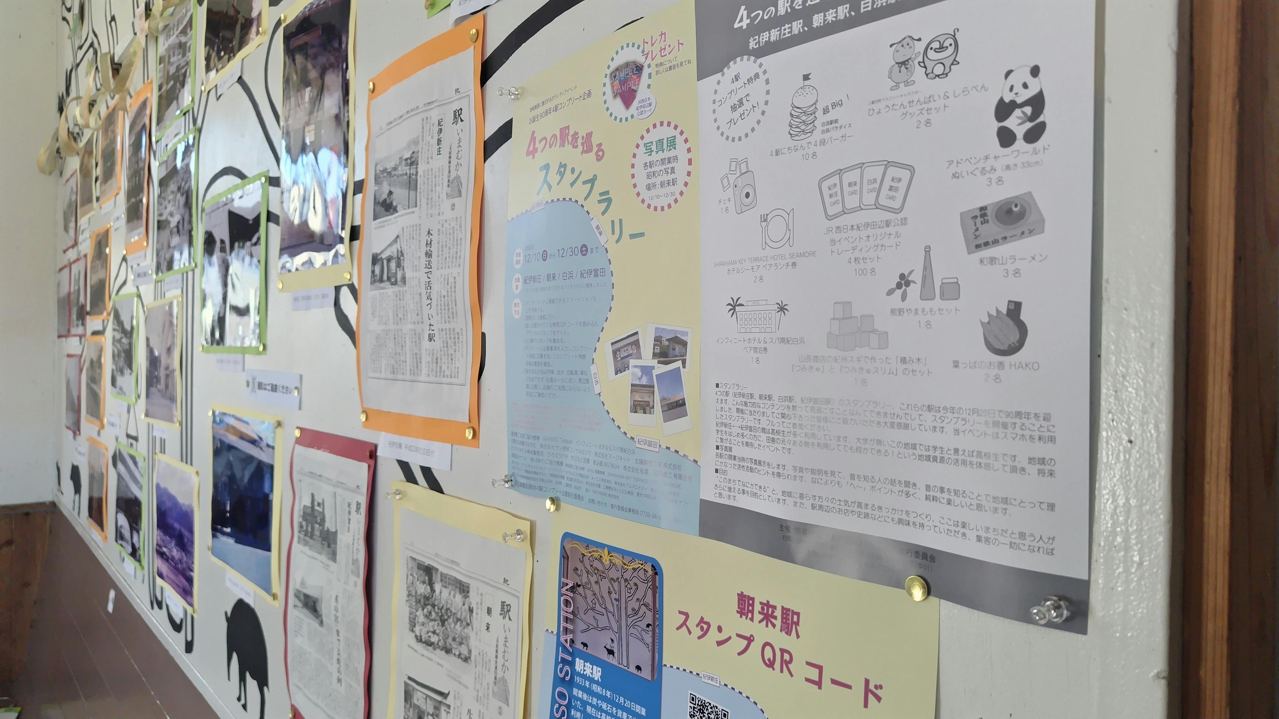 2023/12/21 09:59おかげさまでスタンプラリーは好調にスタートしています。1人でも多くの方にご参加頂きたいと思っています。どうぞよろしくお願いいたします。リアルな駅の様子、まちの様子を知っている人が多いほど、まちに力が付き、ポテンシャルが高くなると考えます。まちの楽しさがさらにアップすると良いなと思っています。4つの駅をコンプリートした後のアンケートにお答えいただくことで特典応募になります。たくさんのご応募お待ちしております。写真は白浜駅のQRコードの場所です。行ってみてください(*^^*)♪ もっと見る