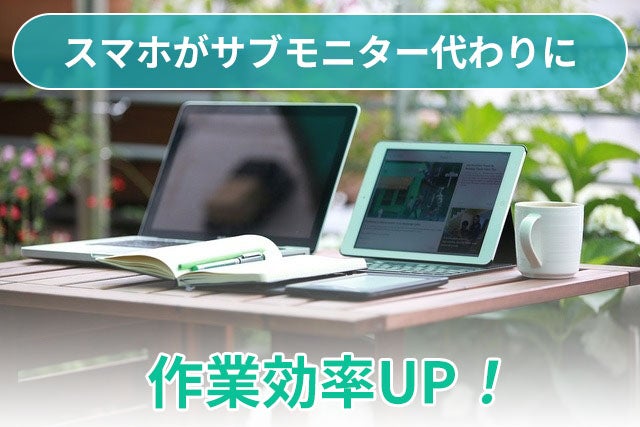 自分の好きな場所でノートPC作業をするノマドワーカーの方なら、スマホをサブモニター代わりに使え、狭い場所でも作業効率が大幅にアップします。