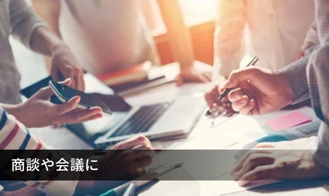 会議や商談などでは相手のPCやスマホのモニターに拡張&ミラーリングして作業ができるため、ディスカッションや注意事項の確認、修正作業などもスムーズに行えます。