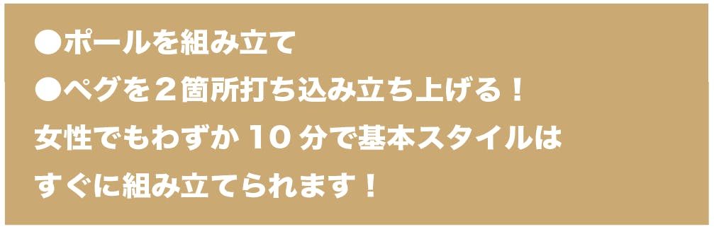 ワンポールテント同様の簡単な設営で、女性でも楽々設営が可能です!