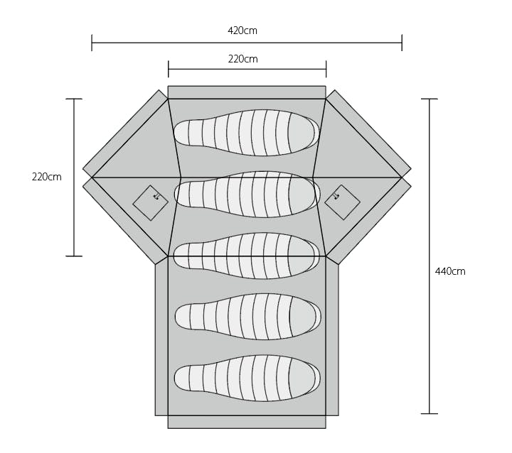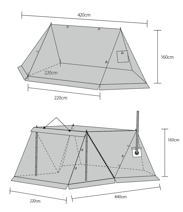 基本形態であるパップテントスタイルに前幕をファスナーでジョイントすることで、 「transHOME-EX/OPEN-TOP」はテント内の広さが通常のパップテントの約3倍の広さを作り出すことができます。4面あるサイドウォールの組み合わせで、両面開放型のフロントシェードスタイルや、片面クローズで横面大開口の出入り口が確保できる、サイドフロントスタイル。まるで2ルームテントのような空間を創り出すことが可能です。組み合わせで演出できるスタイルは無限大!あなたの空想でファミリーキャンプがより一層楽しいものになるはずです。ソロなら贅沢な空間!ファミリーでも十分楽しめるスタイルに変身!