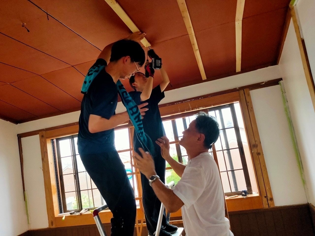 天井補修の様子
