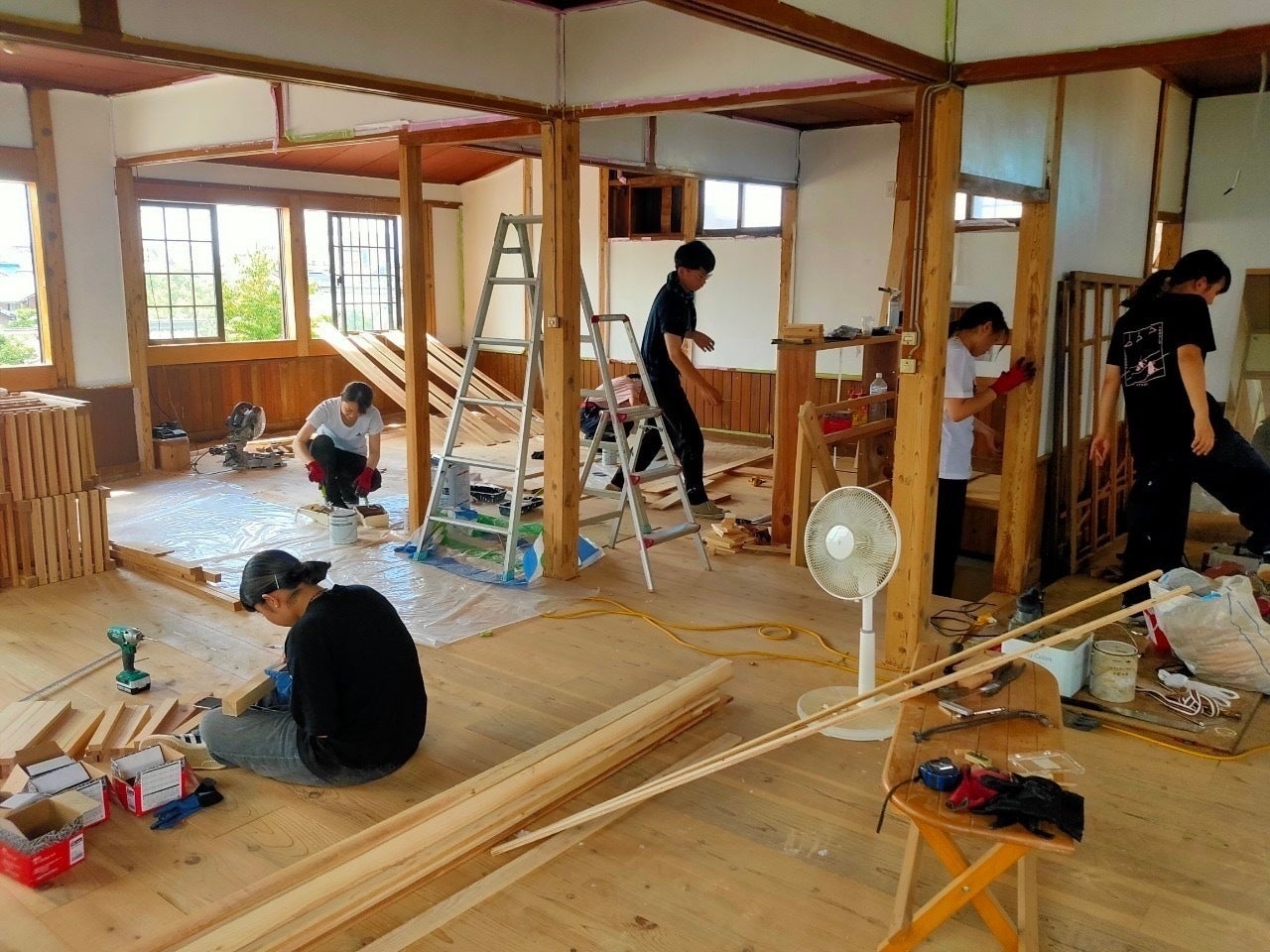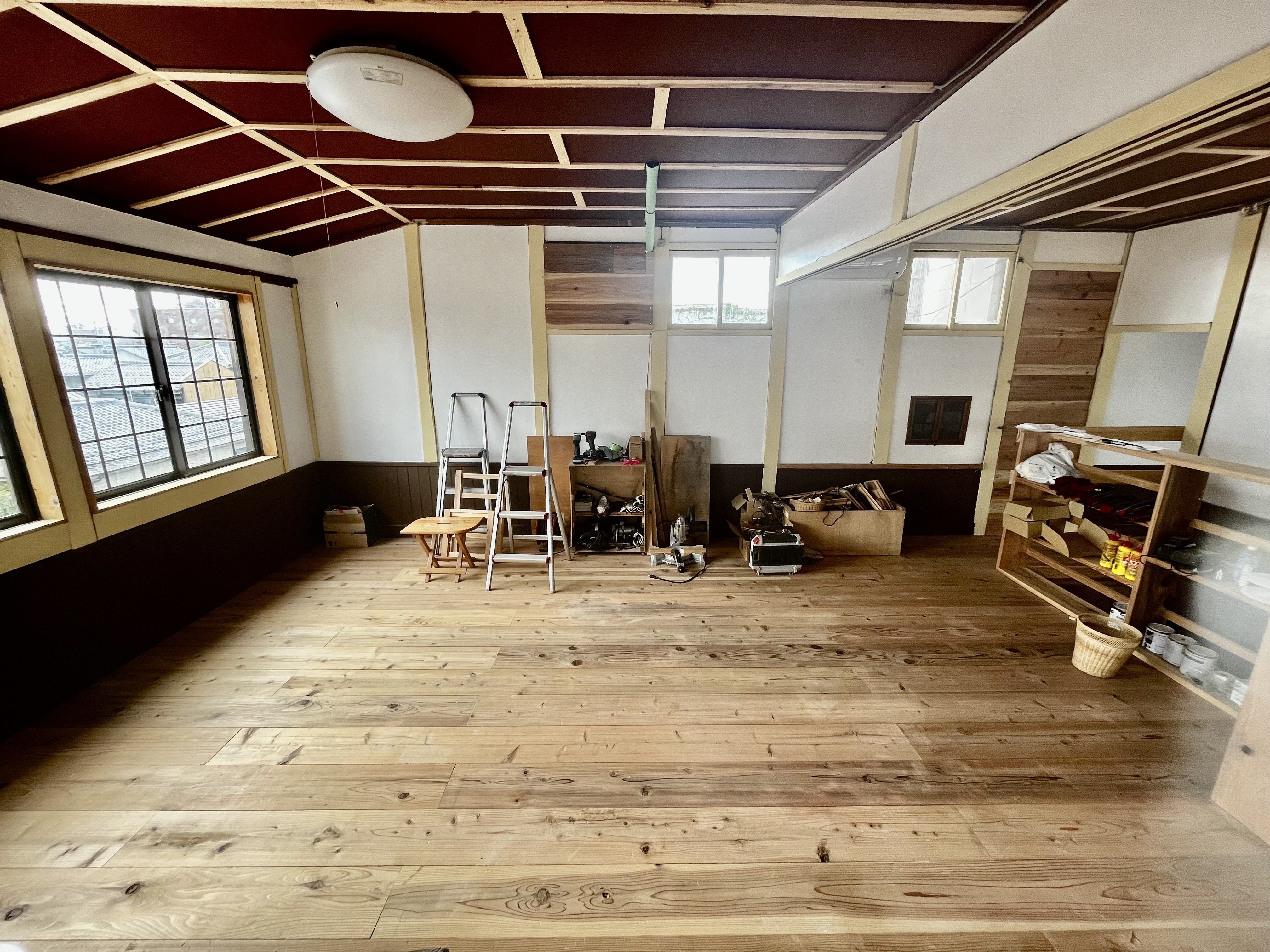 まず第1期では床板の張替や壁、天井の補修など基本的な部分を修繕し、イベントスペースとして貸し出せる事を目標とし、無事完成しました。