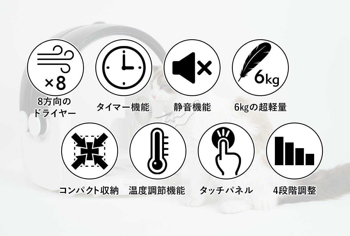 犬種によって異なる乾燥時間もタイマー付きなので乾かしもれや乾かしすぎを防ぎます。