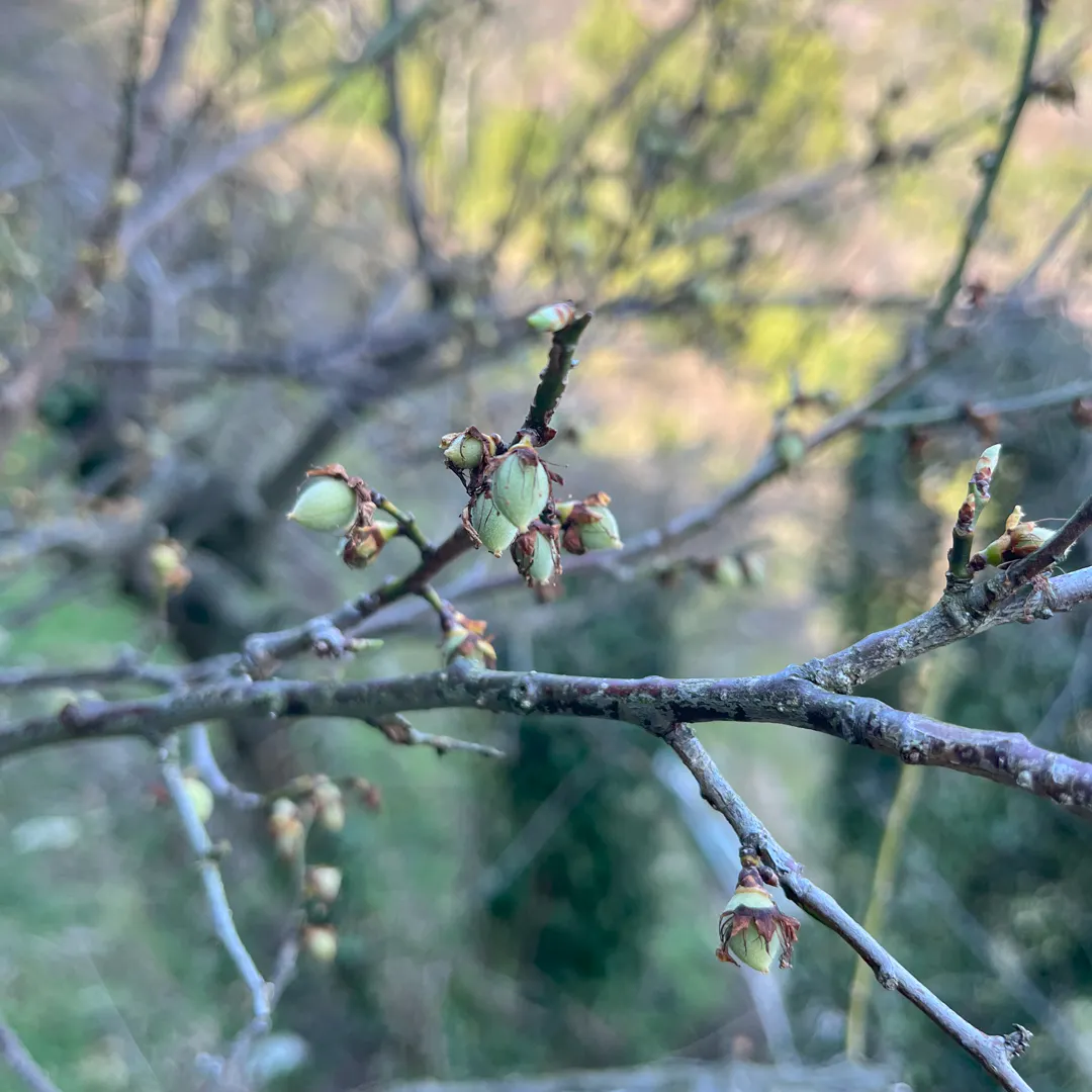 梅の実が膨らんできました。画像は南高梅の果実です。MIYAYOSHI梅酒の原料となる露茜の果実が大きくなるのはもう少し先です。