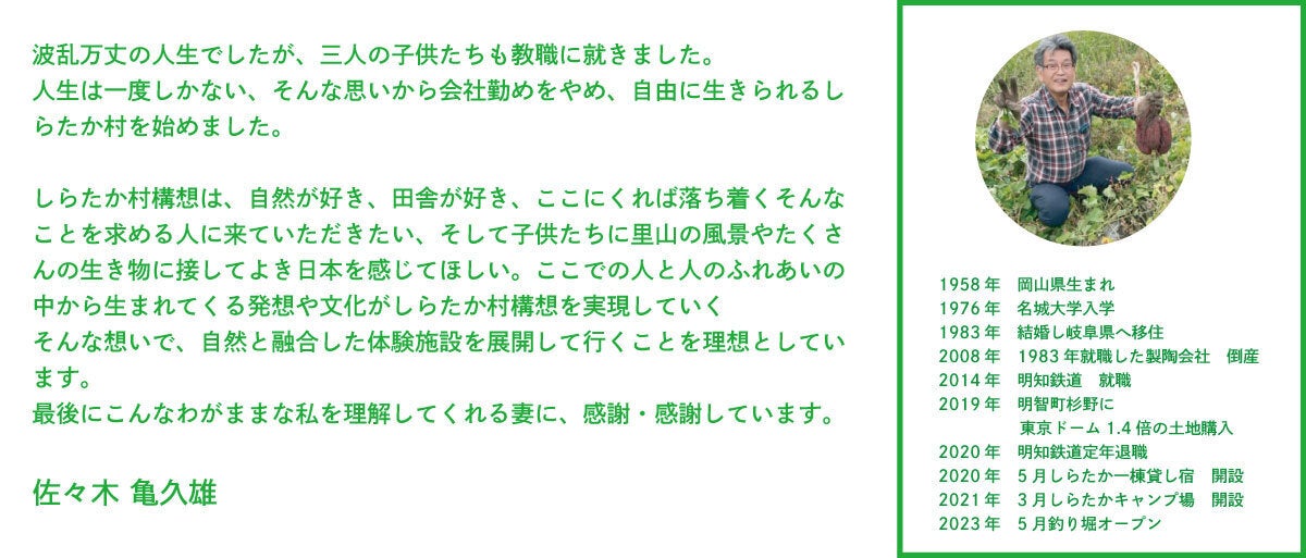 ここで、少しだけ私たちのビジョンにお付き合いください。わたしたちが目指す"しらたか村構想"です。