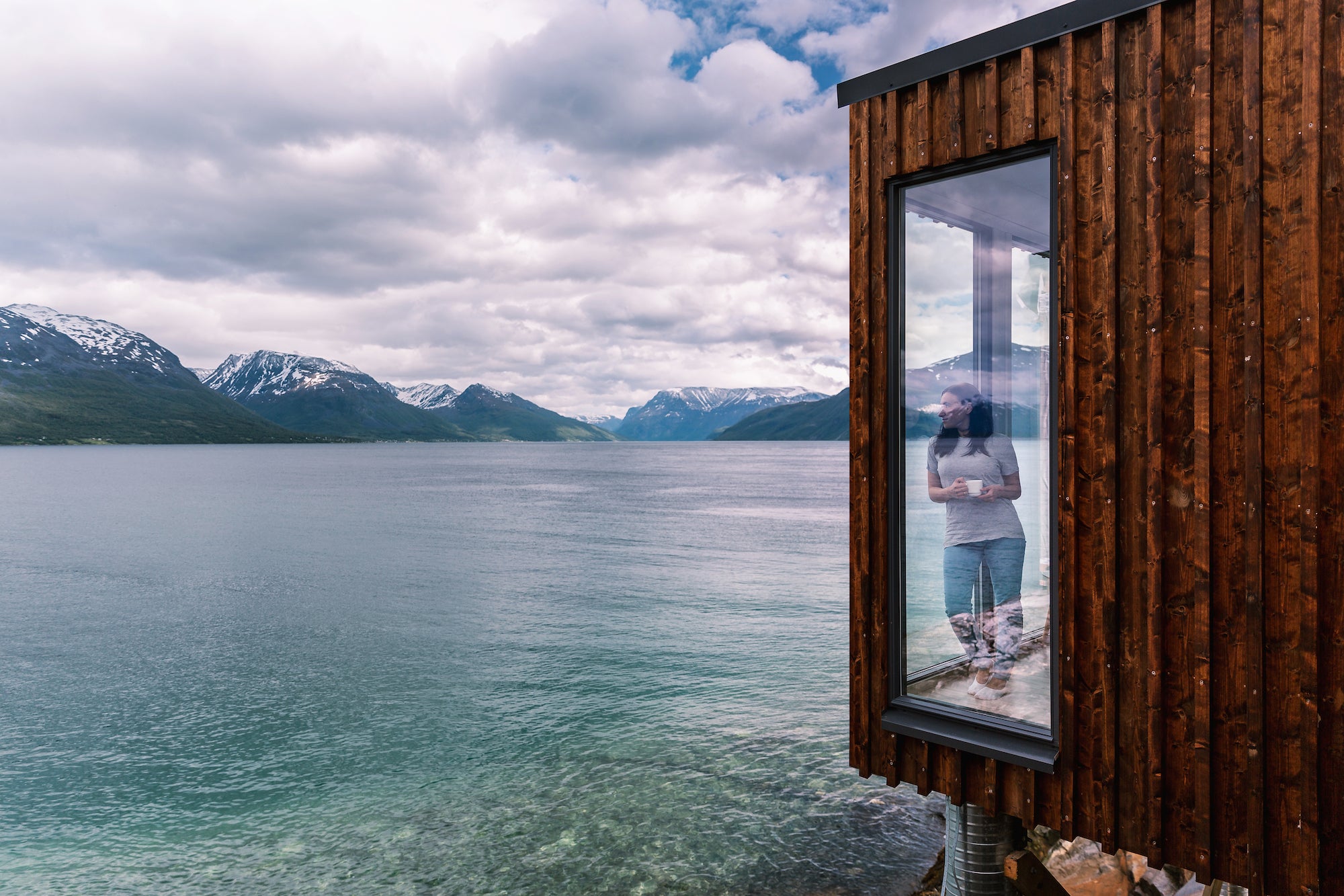 目の前にフィヨルドが広がる宿泊キャビン