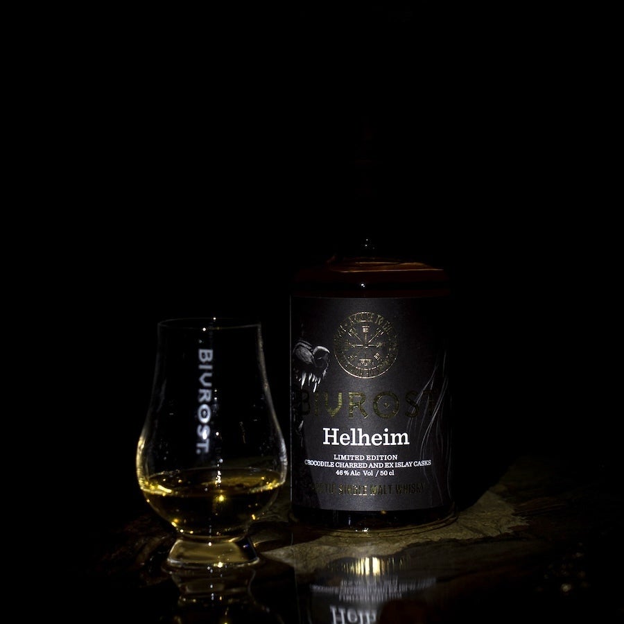 シリーズ第6番目となる「ヘルハイム」は氷のように冷たい大地、ノルウェーの北極圏で氷河の融解水と北欧の大麦から作られ、ハイテク蒸留器で蒸留された後、選び抜かれたクロコダイル・チャーのバーボン樽と元アイラ樽で熟成される。