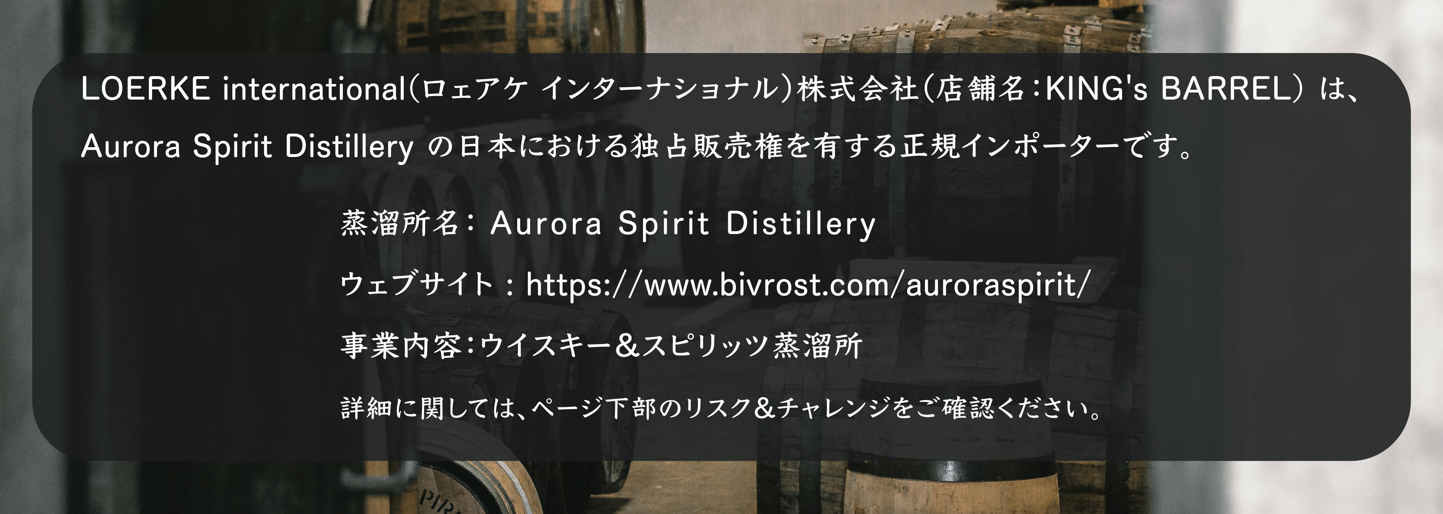 ◉本商品は当社がノルウェーのAurora Spirit 蒸溜所より直輸入し、検品後、横浜にある当社より発送させて頂きます。2023年12月より今回応援して頂いた方々へ順次リターンの発送となりますが、様々な事情により蒸溜所からの出荷時期の遅れ/輸入時の配送の遅れが発生する場合があり、またご支援の数が想定を上回った場合や製造工程上の都合等によりリターンの配送時期が遅れる場合がございます。本文中に記載させていただいたスケジュールは、あくまでプロジェクト公開時点の予定です。万が一配送遅延が発生した場合でもそれに伴うご支援のキャンセルはできません。