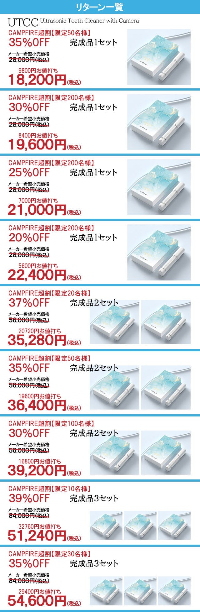 プロジェクト実行者のLIFE AGENTの城内です。私は元々とても歯並びが悪く、長年歯の問題に悩まされていました。歯磨きをしっかりしているつもりでも、どうしても磨き残しがあったりして、自宅でできる何か効果的な方法はないかと探し求めていました。そんな時に出会ったのが「超音波デンタルケア T13 Pro」です。使ってみると驚くほどの効果を発揮し、それが、文字通り目に見えて分かるです。通常のブラッシングでは落とせない、見逃していた汚れを、自分の目で確認してキレイに!超音波の力を自宅で視感・体感できる画期的な製品なのです。私と同じように歯のケアに悩んでいる皆様、またいつまでも歯の健康を保ちたいと考えていらっしゃる皆様、ぜひ効果を実感ください。